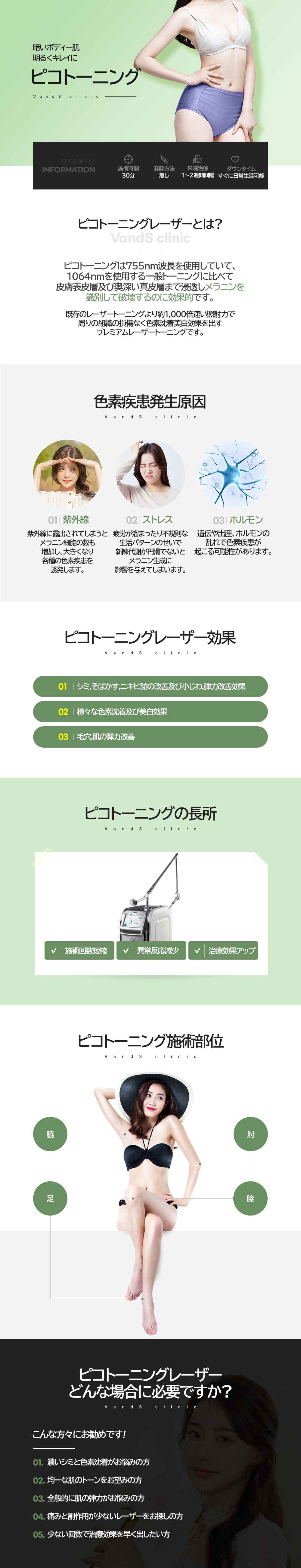一般のトーニングに比べて皮膚表皮層および深い真皮層まで浸透して、メラニンを選択的に破壊するのに効果があります。